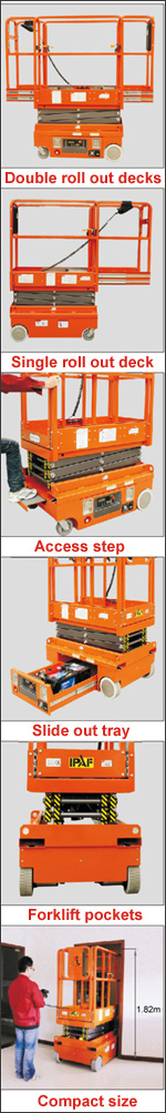 ● Compact size (1.18m×0.76m×1.82m) provide access in and around confined work areas